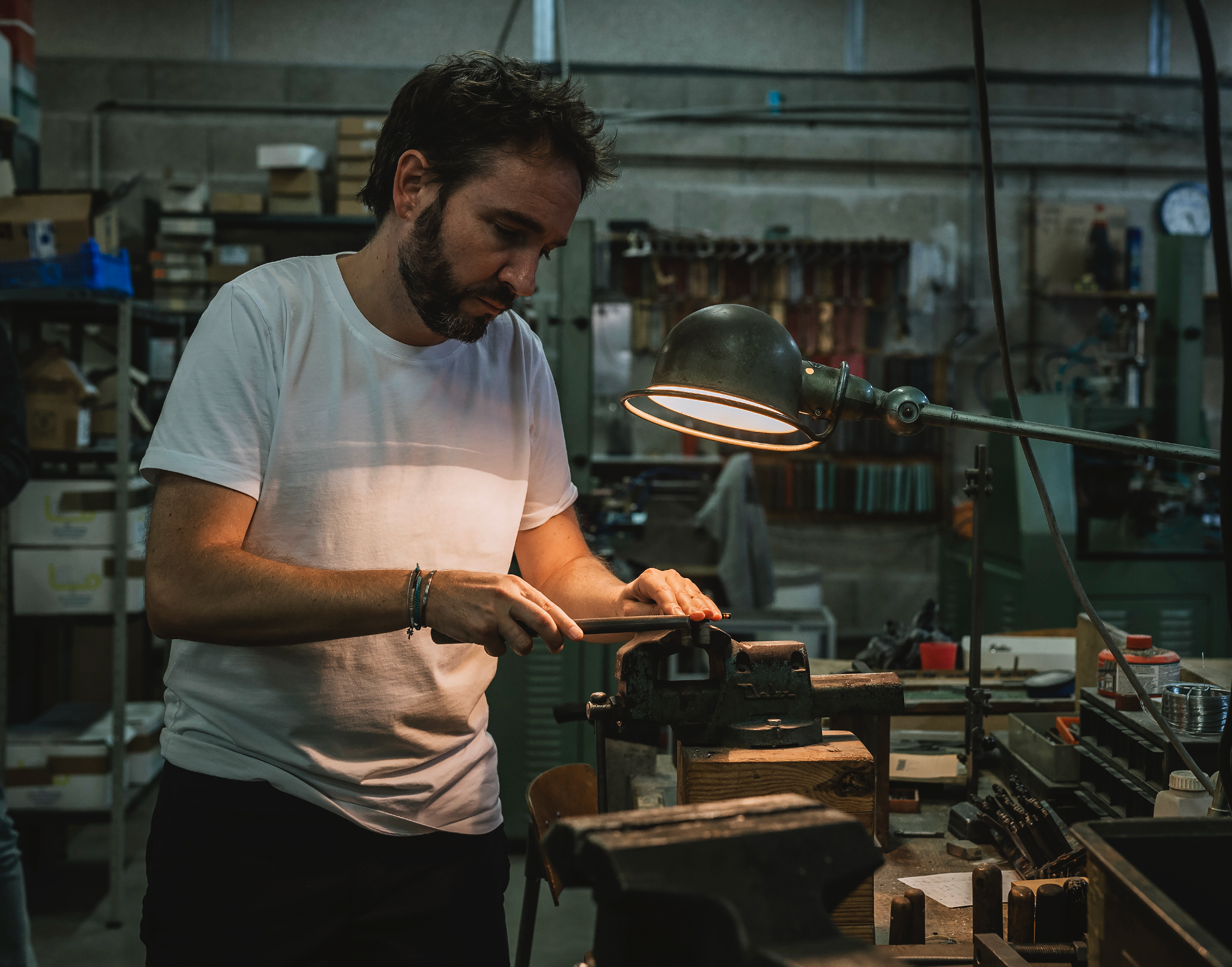 WE HAVE SELECTED OUR PARTNERS FOR THEIR EXCEPTIONALKNOW-HOW IN FRANCE AND GERMANY. IT TAKES THREEMONTHS AND MORE THAN 50 MANUFACTURING STEPS TO MAKEA PAIR OF FRAMES : CUTTING, BENDING, POLISHING, ADDINGTHE STAMP, FINISHING, ...